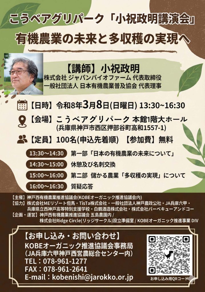 「有機農業の未来と多収穫の実現へ」を開催します。