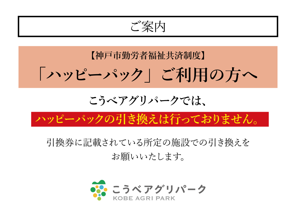 こうべアグリパークではハッピーパックの引き換えは行っておりません。