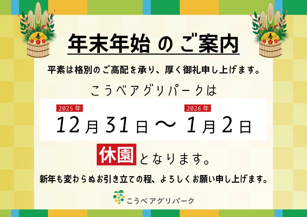 日頃よりこうべアグリパークをご愛顧頂き、誠にありがとうございます。